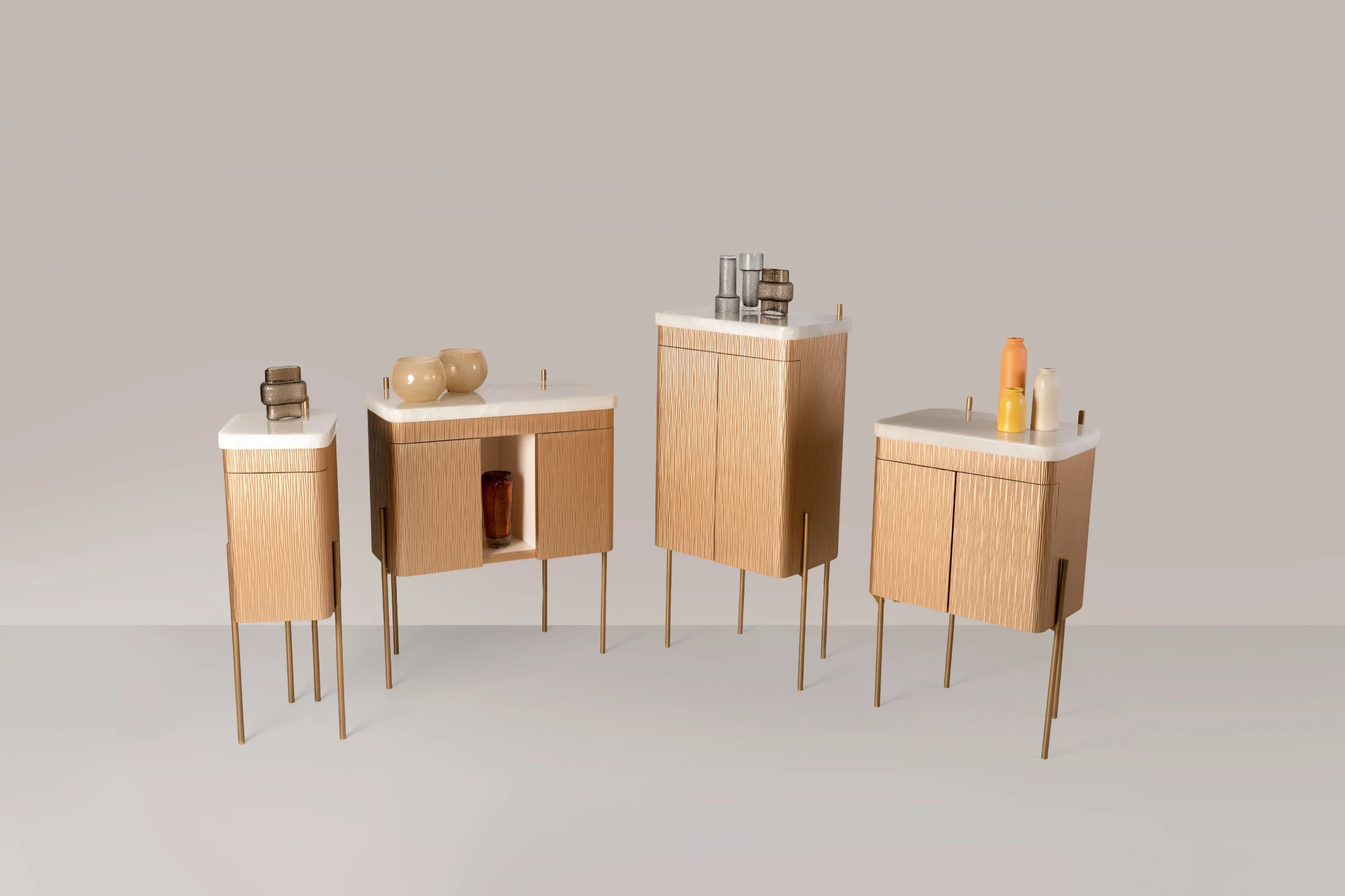 Apollo, crafted to complete the Bottega Living collection, designed for those elusive corners. Available in multiple sizes, it harmonizes effortlessly with vintage-inspired interiors, showcasing the timeless elegance of textured wood, onyx, and bronze metal.