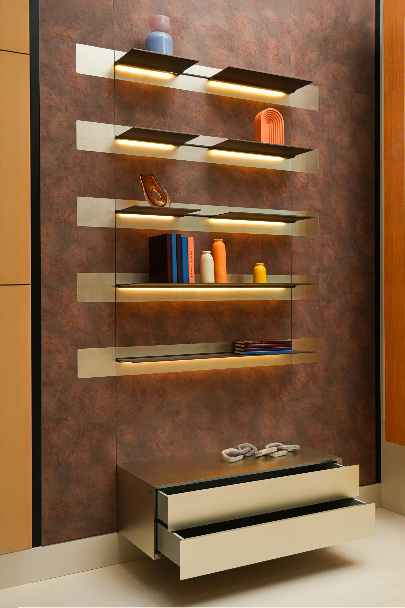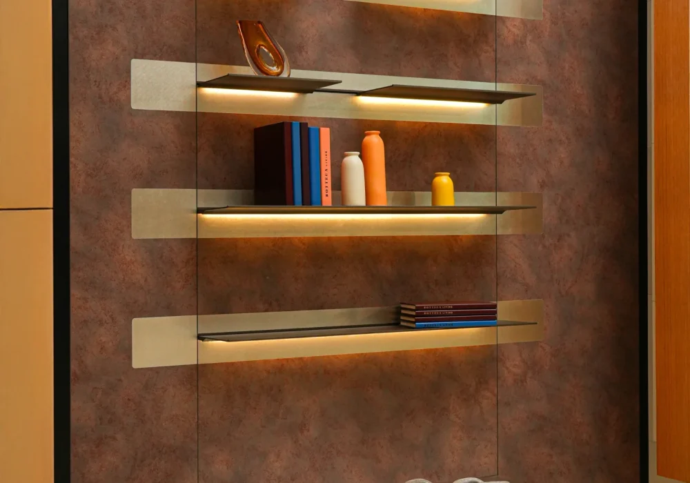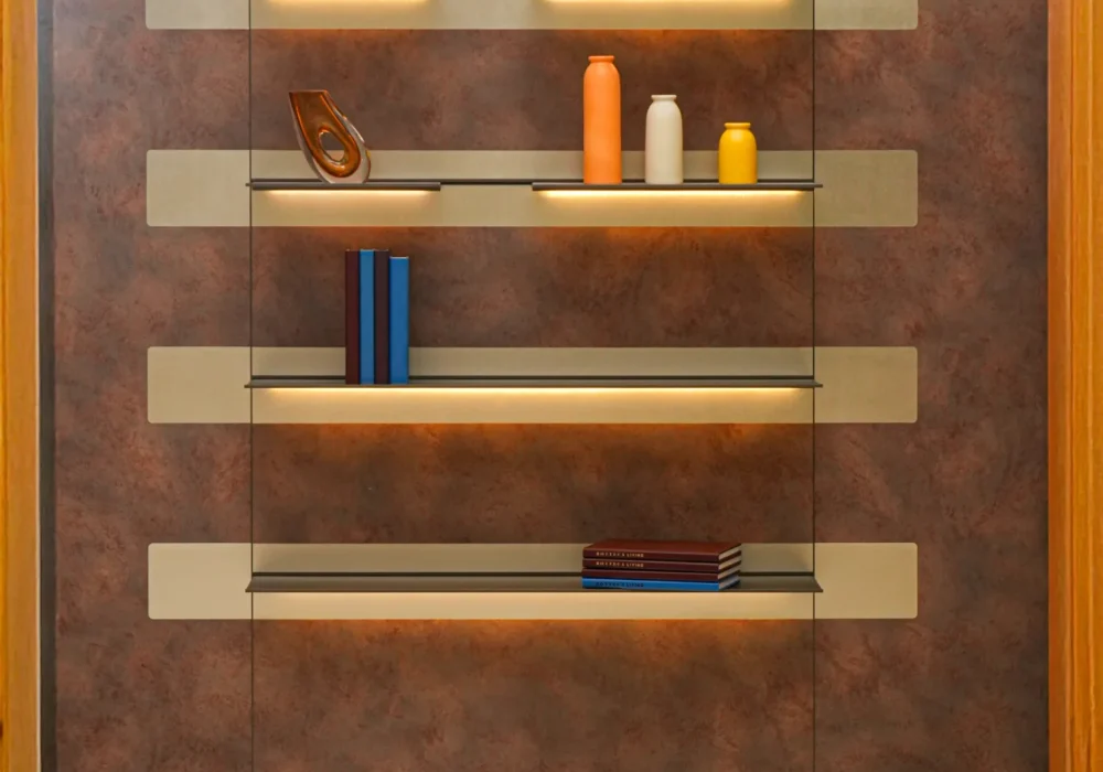 • Finishing: Metal HPL (back panel), aluminum shelves, silver paint (shelves back panel)